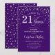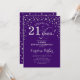 Sorpresa 21ª Invitación de fiesta de cumpleaños. Elegante diseño en color púrpura y falso purpurina plateado. Presenta el tipo de letra de guión y los diamantes confetti. ¡Salud a 21 años! Mándame un mensaje si necesitas más personalización.