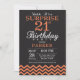 Invitación Sorpresa 21 cumpleaños Chevron negro y coral