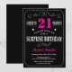 Invitación Sorpresa 21 cumpleaños, rosa caliente y negro