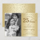 Invitación de Sorpresa de Bodas de Plata por 25 Aniversario de Boda con Foto. Diseño elegante en dorado con letra script y confeti. Puede personalizarse para mostrar cualquier año de casados. ¡Salud por 25 años!