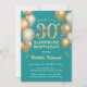 Sorpresa 30 cumpleaños Purpurina Verde azulado y oro Globos Invitación de cumpleaños. Para una mayor personalización, haga clic en el botón "Personalizar" y utilice nuestra herramienta de diseño para modificar esta plantilla.