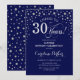 Sorpresa 30.ª Invitación a la fiesta de cumpleaños. Elegante diseño en azul marino y falsa plata purpurina. Presenta el tipo de letra de guión y los diamantes confetti. ¡Salud a 30 años! Mándame un mensaje si necesitas más personalización.