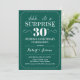 Invitación de Celebración de Sorpresa del 30 Aniversario de Boda. Diseño rústico en verde esmeralda. Cuenta con elegante fuente de escritura blanca. ¡Puede ser personalizado para cualquier año! Envíame un mensaje si necesitas más personalización.