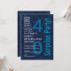 Este moderno diseño de 40 cumpleaños sorpresa en tonos azules es una manera elegante de invitar a sus huéspedes a un fiesta sorpresa de 40 años. Todo el texto es totalmente personalizable. Puede cambiar el color del texto para un aspecto diferente. Recomiendo el papel metálico en el casco de hielo, que da a tus invitaciones un brillo festivo.