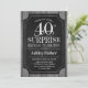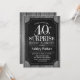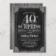 Invitación a la celebración del 40 cumpleaños de Rustic Surprise. Elegante y elegante diseño de madera negra, blanca y gris. Presenta una fuente de script elegante. Mándame un mensaje si necesitas más personalización