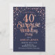 Sorpresa 40.ª Invitación a la fiesta de cumpleaños. Diseño elegante en oro rosa purpurina y marrón. Presenta un diseño elegante de tipo de letra y letra de guión. Mándame un mensaje si necesitas edad personalizado.