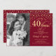 Invitación de Sorpresa 40 Aniversario de Boda con Foto. Diseño elegante en rojo rubí y dorado con letra script y confeti. Se puede personalizar para mostrar cualquier año de matrimonio. ¡Salud por 40 años!