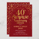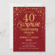 Invitación de Sorpresa 40 Aniversario de Boda Diseño elegante en rojo rubí con fuente de escritura en falso dorado y confeti. Envíame un mensaje si necesitas un año personalizado.