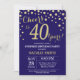 Invitación Sorpresa 40 años marina azul y dorado diamante