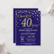 Sorpresa 40 cumpleaños invitación con fondo de diamantes azul y Purpurina de oro de la Marina. Confetti de oro. Cumpleaños de adultos. Cumpleaños de hombres o mujeres.