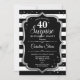 Sorpresa 40.ª Invitación de cumpleaños. Diseño elegante con rayas en blanco y negro, fuente de guión y plata purpurina. Perfecto para una elegante fiesta de cumpleaños. Se puede personalizar para mostrar cualquier edad. Mándame un mensaje si necesitas más personalización.