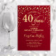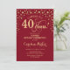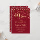 Sorpresa 40.ª Invitación a la fiesta de cumpleaños. Elegante diseño de color rojo oscuro y falso oro purpurina. Presenta el tipo de letra de guión y los diamantes confetti. ¡Salud a 40 años! Mándame un mensaje si necesitas más personalización.