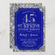 Diseño elegante y sofisticado en azul zafiro real y plateado con brillo falso. Cuenta con una fuente de letra cursiva elegante. Envíame un mensaje si necesitas una personalización adicional.