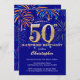 Sorpresa 50 cumpleaños Invitación a fuegos artificiales de la Marina Azul y Oro Arcoiris. Para una mayor personalización, haga clic en el botón "Personalizar" y utilice nuestra herramienta de diseño para modificar esta plantilla.