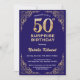 Invitación Sorpresa 50.º Purpurina de oro y azul de la Marina