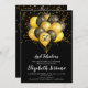 Globos negros y dorados Y confeti sorpresa 50 cumpleaños fiesta de invitación. Diseño audaz de estilo negro y dorado con tipo de escritura blanca moderna. Personalizar de cualquier edad. 30, 40, 60, 70, 80 y más.