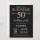 Sorpresa 50 cumpleaños invitación con fondo negro y Rosa Purpurina de oro rosado.Pizarra. Cumpleaños de adultos. Invitar el cumpleaños de hombres o mujeres. Cualquier edad.