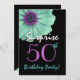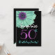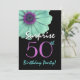 Invitación Sorpresa 50 cumpleaños turquesa y margarita morada