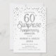 Invitación de sorpresa para el 60º aniversario de boda. Diseño de tarjeta de invitación elegante en blanco con fuente de escritura en plata falsa y confeti. Perfecto para una celebración de aniversario de diamante con estilo y sorpresa