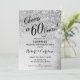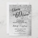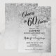 Diseño elegante en plata brillante falsa con confeti y fuente de letra script negra. ¡Salud por 60 Años! Perfecto para una fiesta con estilo. Envíame un mensaje si necesitas un año personalizado.