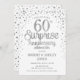 Invitación sorpresa 60 aniversario de bodas. Diseño de tarjeta de invitación elegante en blanco con fuente de escritura en plata falsa y confeti. Perfecto para una celebración de aniversario de diamante sorpresa con estilo