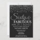 Sorpresa, 60° cumpleaños. Sesenta y fabuloso. Negro y plateado.Diamantina plateada.Fiesta de cumpleaños para adultos. Para hombres o mujeres.