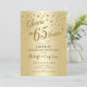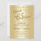 Diseño elegante en oro con brillo falso, confeti y letra script. ¡Salud por 65 Años! Perfecto para una fiesta con estilo. Envíame un mensaje si necesitas un año personalizado.