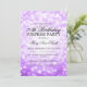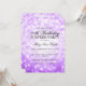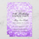 Elegante diseño de invitación de la 70ª Surprise Birthday Party con el motivo Purple Purpurina Lights, nombre y fecha personalizados y texto adicional.