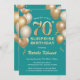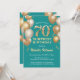 Sorpresa 70 cumpleaños Purpurina Verde azulado y oro Globos Invitación de cumpleaños. Para una mayor personalización, haga clic en el botón "Personalizar" y utilice nuestra herramienta de diseño para modificar esta plantilla.
