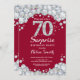 Sorpresa 70 cumpleaños invitación. Fondo rojo del diamante Diamante de imitación Borgoña, rojo y plateado. Elegante Bash cumpleaños. Cumpleaños de adultos. Cumpleaños de las mujeres. Cumpleaños de los hombres.
