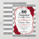 Invitación Sorpresa 80 cumpleaños - rojo blanco plateado