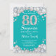 Invitación Sorpresa 80 cumpleaños Verde azulado y diamante pl