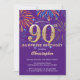 Invitación Sorpresa 90 cumpleaños Purple y Gold Firework
