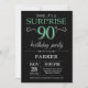 Sorpresa 90 cumpleaños invitación con antecedentes de Purpurina negro y verde.Pizarra. Cumpleaños de adultos. Invitar el cumpleaños de hombres o mujeres. Cualquier edad.