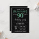Invitación Sorpresa 90 cumpleaños Purpurina negro y verde