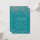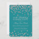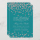 Elegante diseño de invitación de la fiesta de cumpleaños 90 de Surprise con motivo de Purpurina Plata Confetti en Verde azulado, nombre y fecha personalizados y texto adicional. Fácil de usar y fácil de personalizar.