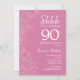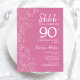 Invitación de cumpleaños número 90 de Floral Pink Surprise. El diseño femenino moderno minimalista presenta acentos botánicos y tipografía. Sencilla tarjeta de invitación floral perfecta para una elegante celebración de cumpleaños sorpresa femenina.
