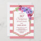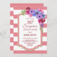 Invitación Sorpresa cumpleaños 60 rayas rosadas flores púrpur