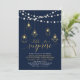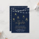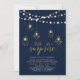 Celebra tu día especial con esta elegante invitación moderna para una fiesta de aniversario de bodas. Este diseño sofisticado presenta tipografía elegante, hermosas luces de cuerda y gráficos de luminarias geométricas con textura dorada. Puedes personalizar el texto y el color de fondo. Invitación perfecta para una celebración de aniversario dorado y azul marino para cualquier año.
