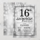 Invitación de cumpleaños sorpresa 16 con luces de cuerda plateadas con fondo de brillo plateado. Cumpleaños plateado. Cumpleaños de niños. Invitación de cumpleaños para niño o niña. 13 15 16 18 20 21 30 40 50 60 70 80 90 100, cualquier edad. Para una personalización adicional, haga clic en el botón "Personalizar" y use nuestra herramienta de diseño para modificar esta plantilla.