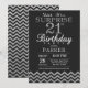 Invitación sorpresa de cumpleaños 21 con Chevron de brillo de plata. Pizarra. Brillo negro y plateado. Cumpleaños de adulto. Invitación de cumpleaños para hombre o mujer. Para una mayor personalización, haga clic en el botón "Personalízalo" y use nuestra herramienta de diseño para modificar esta plantilla.