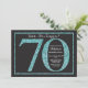 Invitación sorpresa de cumpleaños 70 años. Invitación a la fiesta de cumpleaños con brillo negro y teal con fondo de pizarra. Cumpleaños sorpresa. Cumpleaños de adulto. Fiesta de cumpleaños para hombres o mujeres. Para una mayor personalización, haga clic en el botón "Personalizar" y use nuestra herramienta de diseño para modificar esta plantilla.