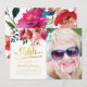 Invitación Sorpresa de cumpleaños con foto floral elegante