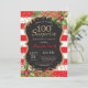 Invitación sorpresa de cumpleaños número 100 para mujeres u hombres. Invitación a la fiesta de cumpleaños de Navidad. Flor floral de Navidad. Brillo negro, rojo y dorado. Rayas rojas y blancas. Digital imprimible. Para una mayor personalización, haga clic en el botón "Personalízalo" y use nuestra herramienta de diseño para modificar esta plantilla.