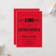 Invitación de cumpleaños número 100 sorpresa tipografía negra y roja. Fondo negro y rojo. Cumpleaños adulto. Cumpleaños masculino hombres o mujeres. Niños niño o niña adolescente joven cumpleaños invitación. 13 15 16 18 20 21 30 40 50 60 70 80 90 100. Cualquier edad. Para una mayor personalización, haga clic en el botón "Personalízalo" y use nuestra herramienta de diseño para modificar esta plantilla.