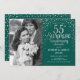 Invitación sorpresa de bodas de 55 años con foto. Diseño elegante en verde esmeralda con fuente de escritura en plata falsa y confeti. Envíame un mensaje si necesitas un año personalizado.