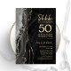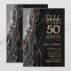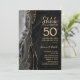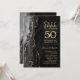 Invitación de celebración del 50º aniversario de ágata negra y dorada sorpresa. Elegante diseño moderno con fondo de geoda de mármol de ágata en acuarela, fuente de letra script con brillo dorado falso. Tarjeta de invitación elegante perfecta para una fiesta de aniversario de boda con clase. Invitaciones Zazzle impresas o plantilla digital para imprimir instantáneamente.