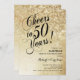 Invitación de aniversario de bodas de oro sorpresa 50 con foto en la parte frontal de la tarjeta. Diseño elegante en oro falso reluciente. Características tipográficas de fuente de escritura y confeti. Perfecto para una celebración de aniversario de oro cincuenta con estilo. Personalice con sus propios detalles. Mensaje si necesita año personalizado. Impreso invitaciones Zazzle o plantilla digital para imprimir instantánea.