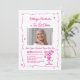 La foto del celebrante de cumpleaños ocupa el centro del escenario en esta moderna invitación de cumpleaños martini. El elegante diseño de moda incluye un espresso martini. Una proa de bonito añade un toque femenino. Todo el texto es editable.