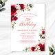 Invitación SORPRESA FIESTA 70 cumpleaños Floral rosa rojo